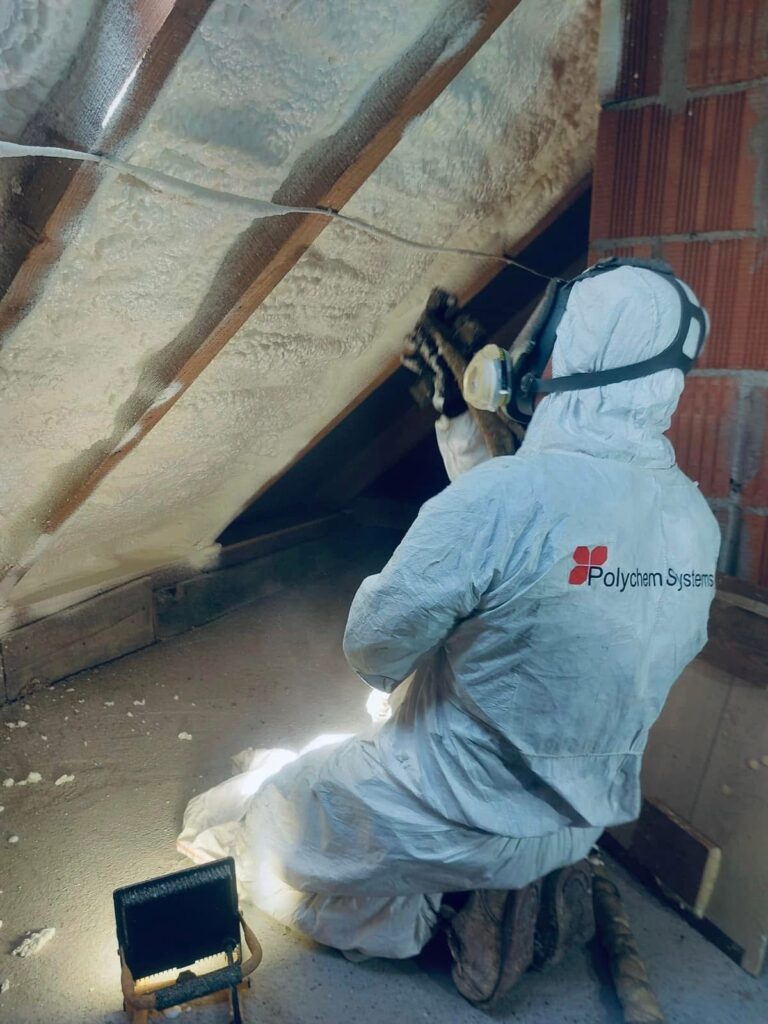 Natryskowa aplikacja piany poliuretanowej wypełnia nawet najmniejsze szczeliny, eliminując mostki termiczne i zapewniając wyjątkową szczelność.